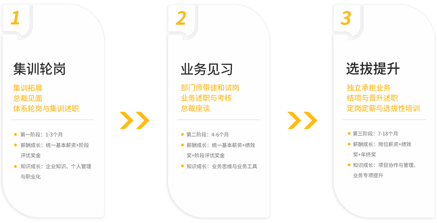 面試結(jié)果決定同學(xué)們是否能成為世友管培生。被錄取的同學(xué),薪資成長將分為以下三階段:(1-3個月):統(tǒng)一基本薪資+階段性評分獎勵;(4-6個月):統(tǒng)一基本薪資+績效工資+階段性考核獎;(7月以后):會根據(jù)部門及確定崗位的特質(zhì)確定不同的薪資標準。